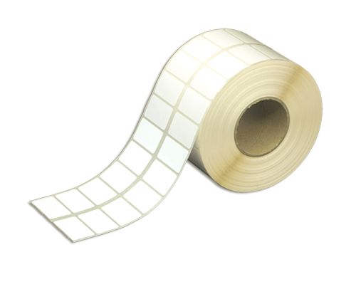 Produktinformationen "Klebeetiketten aus HDPE Folie, 40 x 40 mm, 50 mm Kern, extra stark haftend, 2-bahnig, 2.500 Etiketten je Rolle"