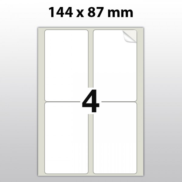 Produktinformationen "Klebeetiketten aus PET Folie, A4, 87 x 144, weiß matt, 100 Blatt pro Packung"