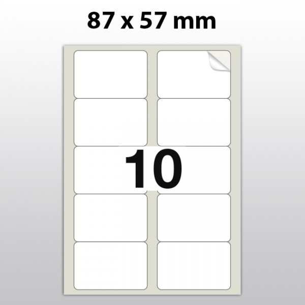 Produktinformationen "Klebeetiketten aus PET Folie, A4, 87 x 57 mm, weiß matt, 100 Blatt pro Packung"