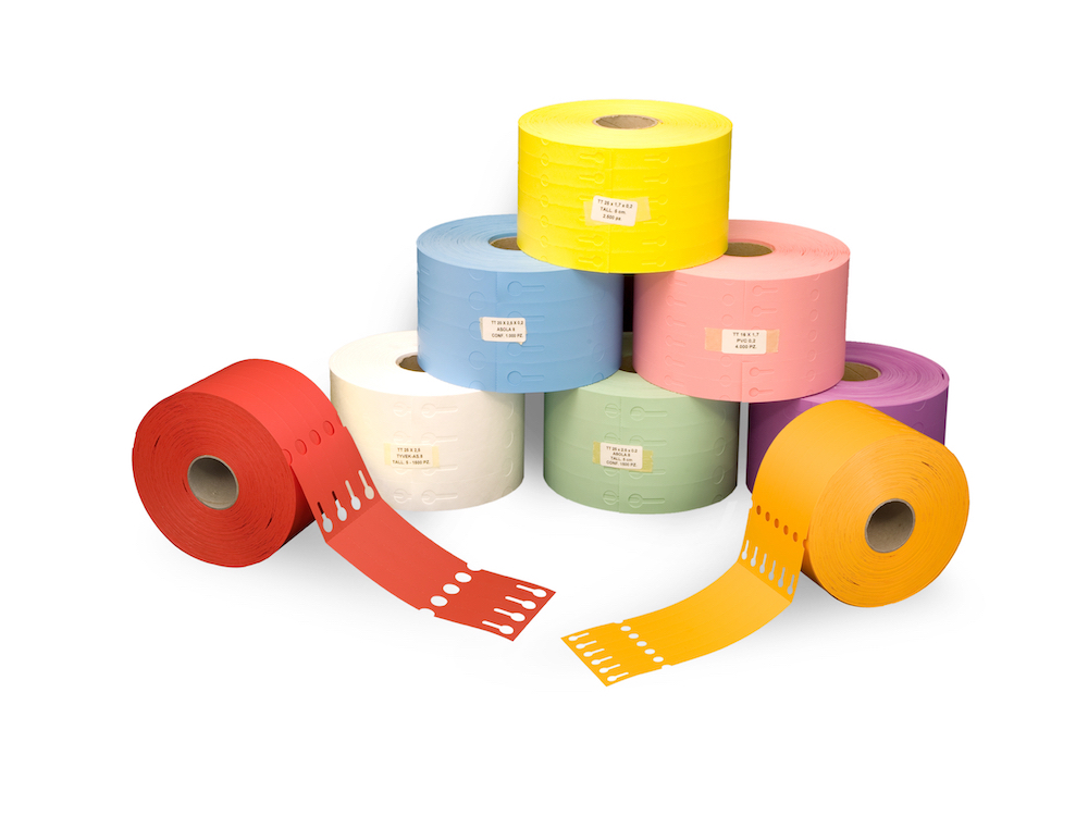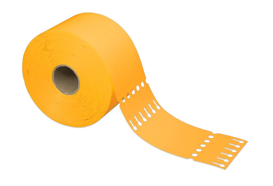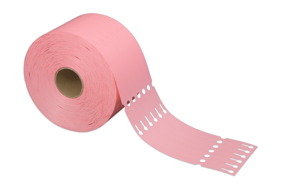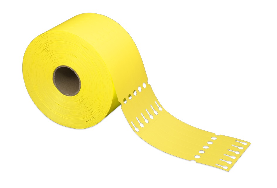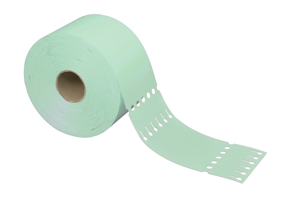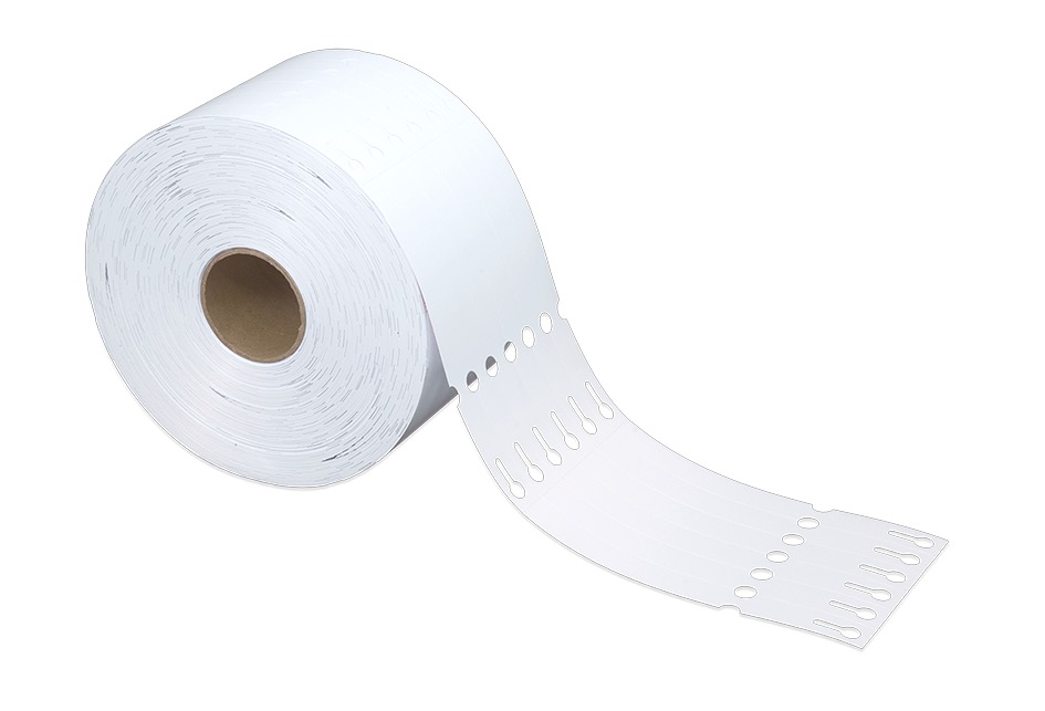 Schlaufenetiketten aus HDPE 200μ, 17 x 250 mm, 50 mm Kern, 2.500 Etiketten je Rolle